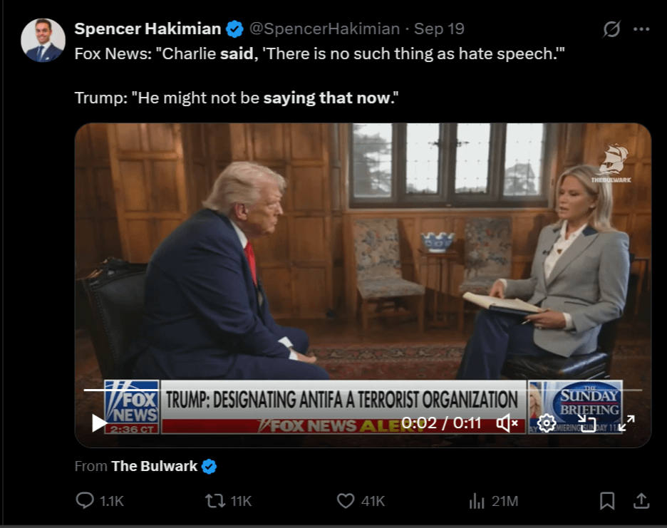 Lackerbawls on September 21, 2025 4:54 am Is….is this an actual quote??? I’m sure if it is he meant Kirk would have had a change of heart given the current situation right? RIGHT?