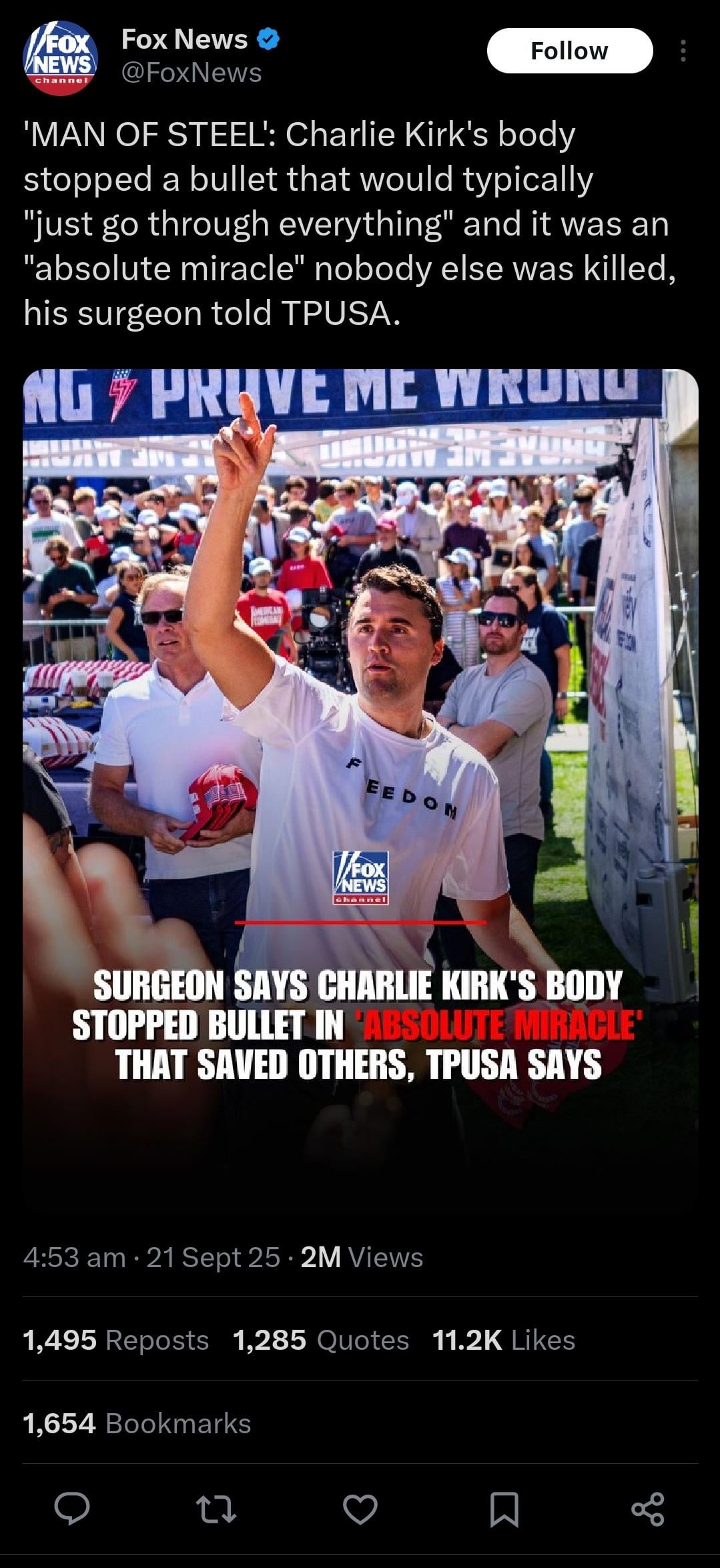lol, they’re arguing the reason why there was no exit wound from a .30-06 bullet was because he was so tough.