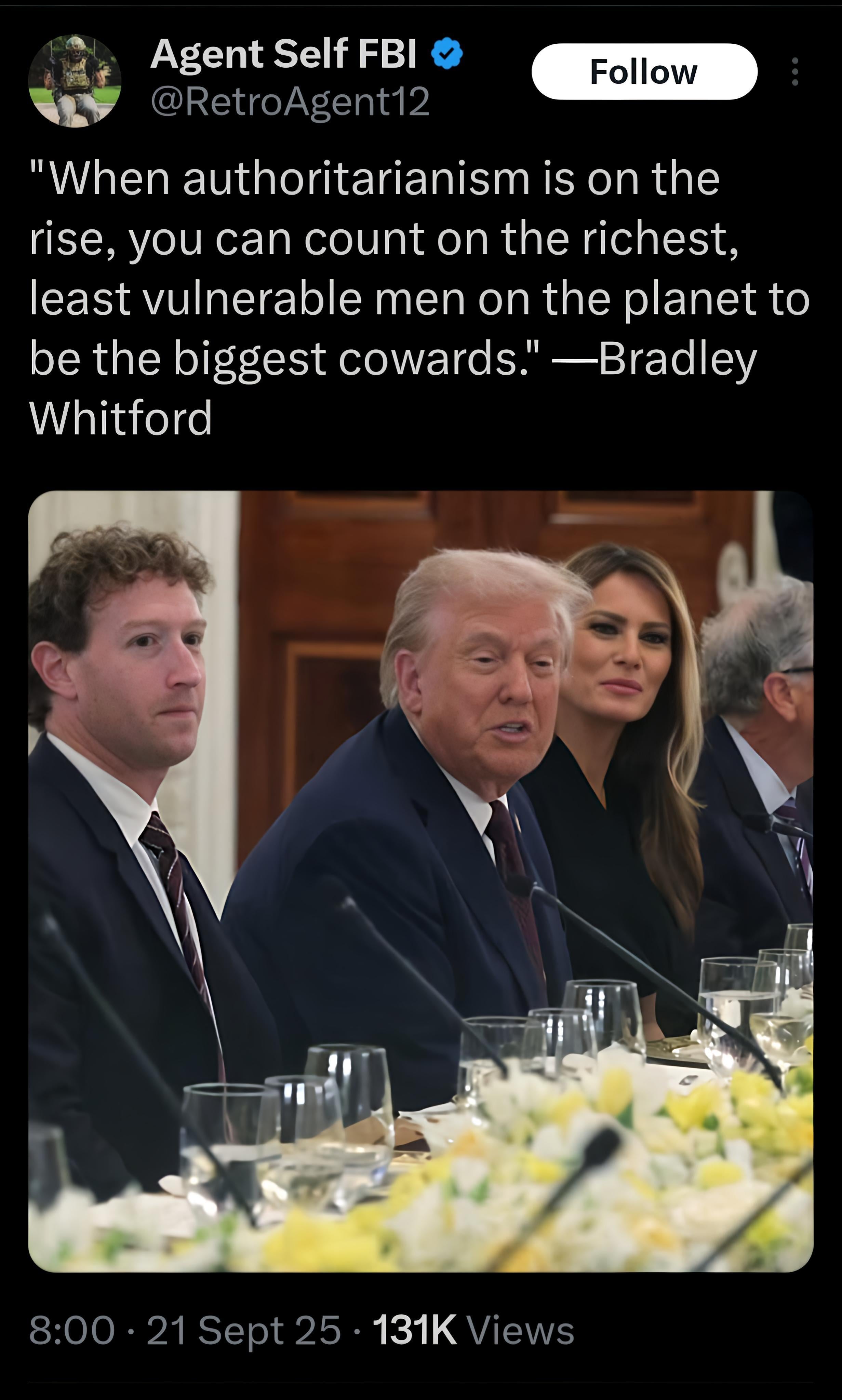 Zuckerberg might be the most weasely and pathetic of them all. Just something about the way he completely capitulated immediately. Grovelling loser.