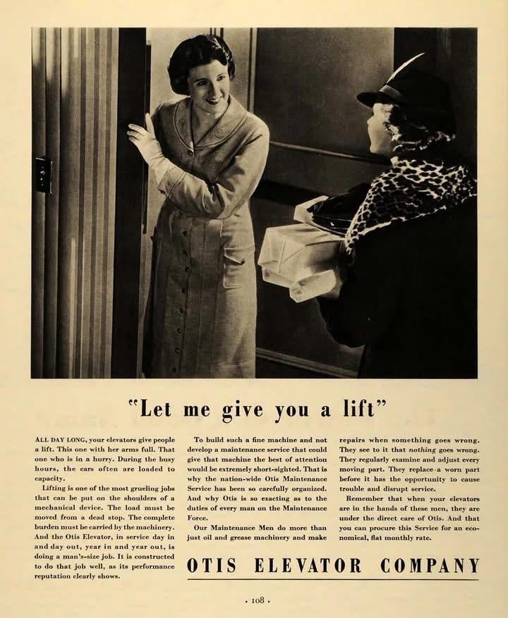 “Let me give you a lift” – 1935 Otis Elevator magazine ad!