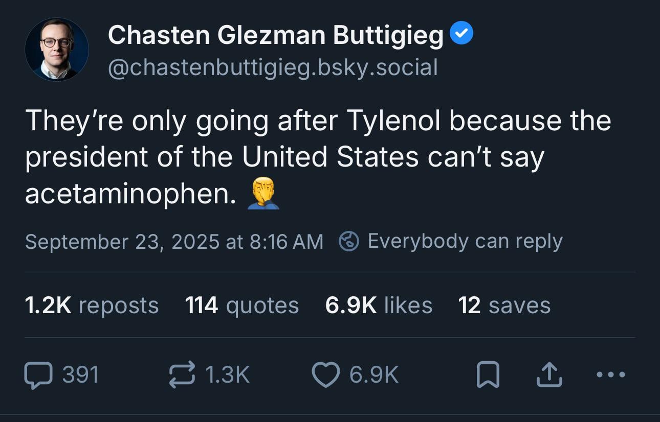 I just have to wonder if the manufacturer of Tylenol has done or not done something to trigger Trump.