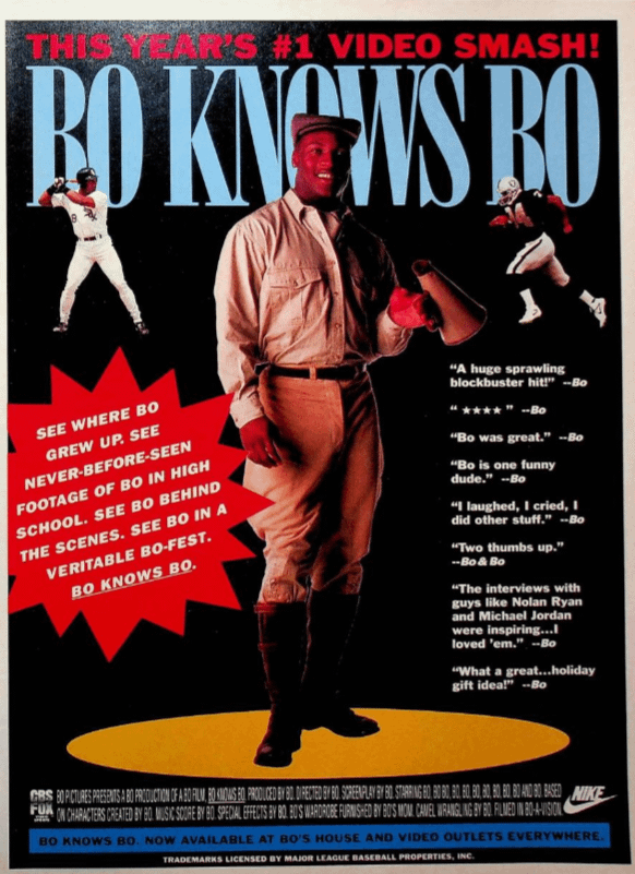 Ad for Bo Knows Bo (CBS/Fox Video) from the January 17, 1992 edition of Entertainment Weekly. A full-on “Bo-fest” with behind-the-scenes footage, interviews, and plenty of tongue-in-cheek self-reviews straight from Bo himself.