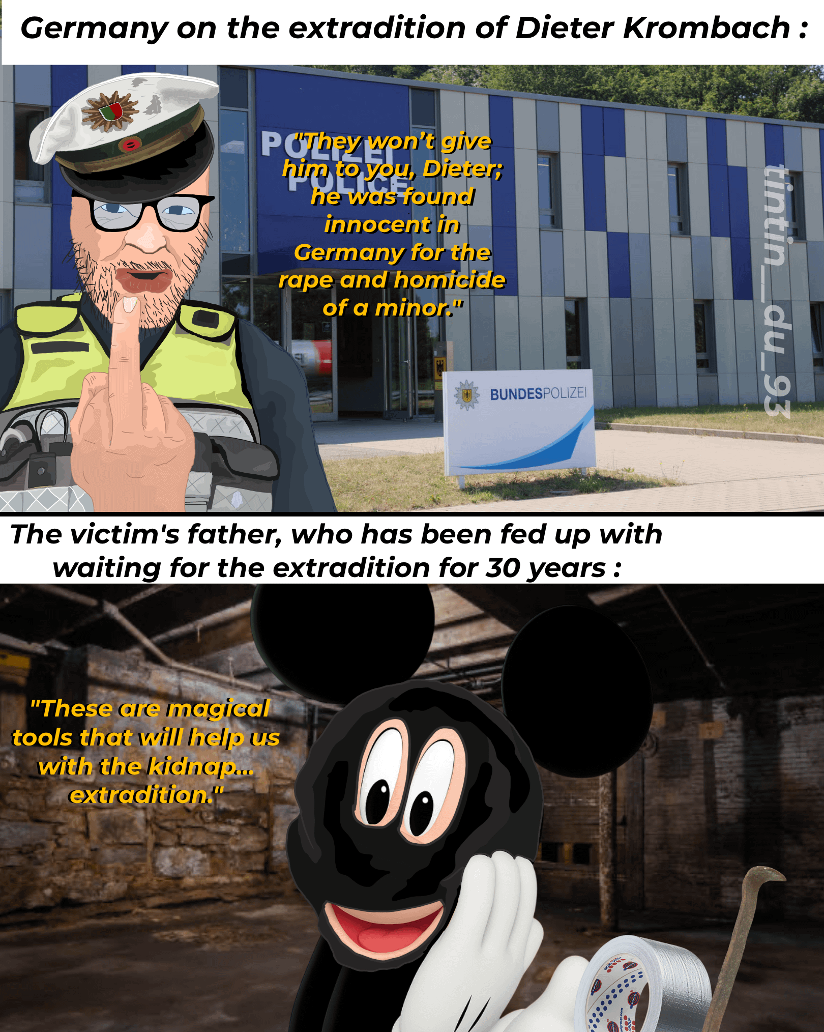 Obligatory reminder that he wasn’t extradited because the German court found him not guilty in the case of rape and murder but because the French court refused to hear his legal defence. Even though it was in accordance with French law since he refused to show up it wasnt a valid trial according to German law which made his extradition illegal.