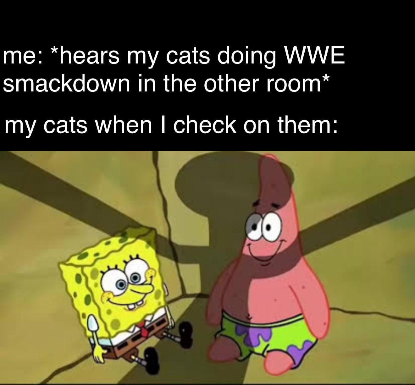 The way they immediately stop all chaos and sit there like perfect angels when they see you coming is both hilarious and slightly concerning