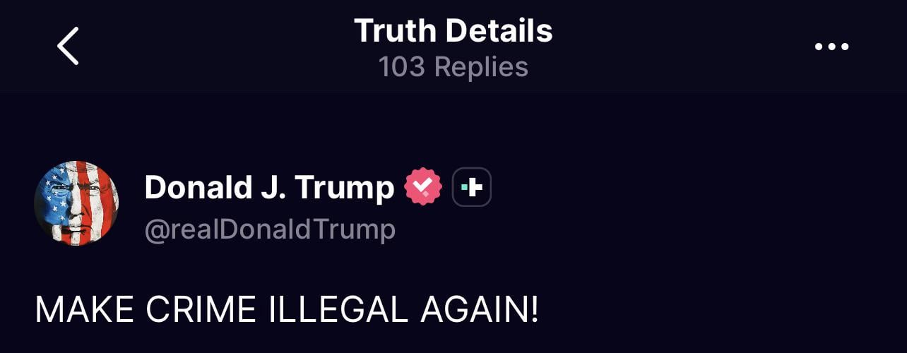Crime already is illegal for us. It’s people like Trump that it doesn’t apply to. So I’m with ya, Dump. Start with yourself.