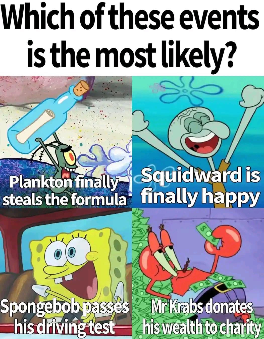 I mean, I see absolutely god awful drivers every single day of my life. Definitely SpongeBob passing his driving test