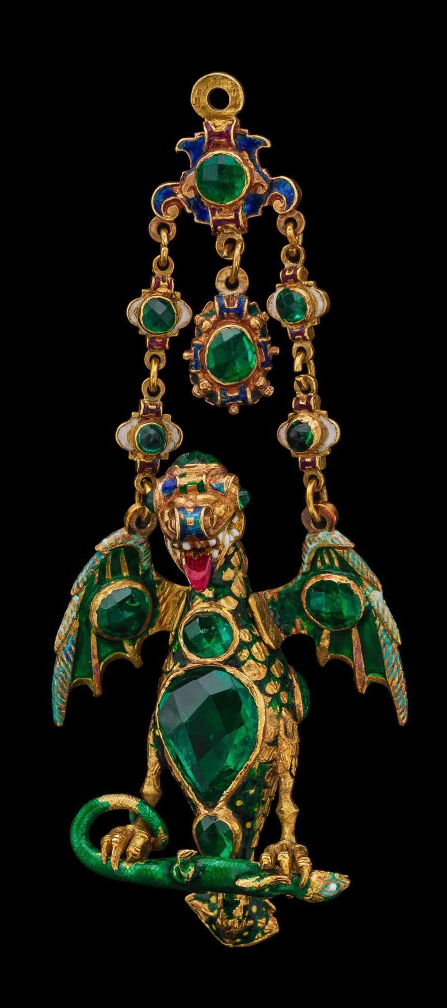A 16th Century CE emerald dragon pendant from Spain. Rothschild Collection Via the Albion Art Institute [908×2048] by Fuckoff555