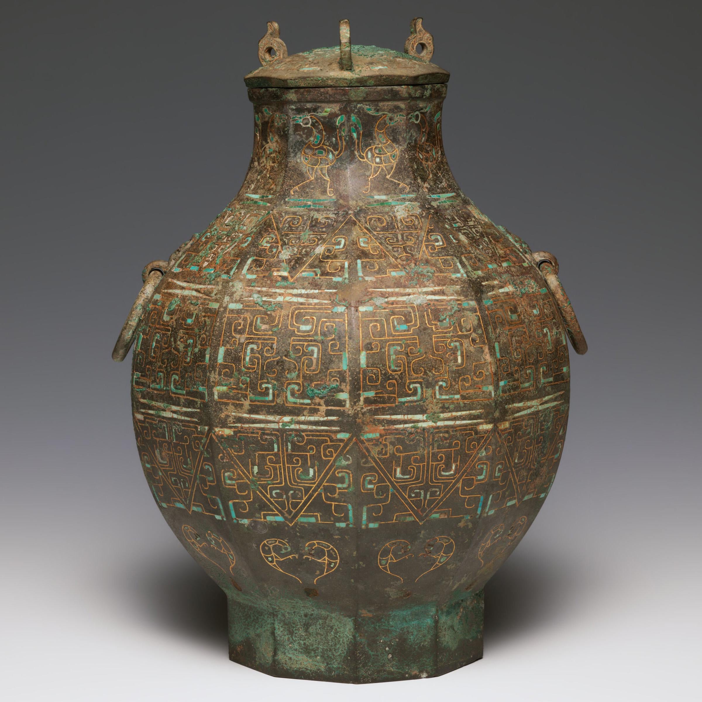Bronze decagonal wine vessel with gold and turquoise inlays. China, Warring States, 475-221 BC [2400×2400] by MunakataSennin