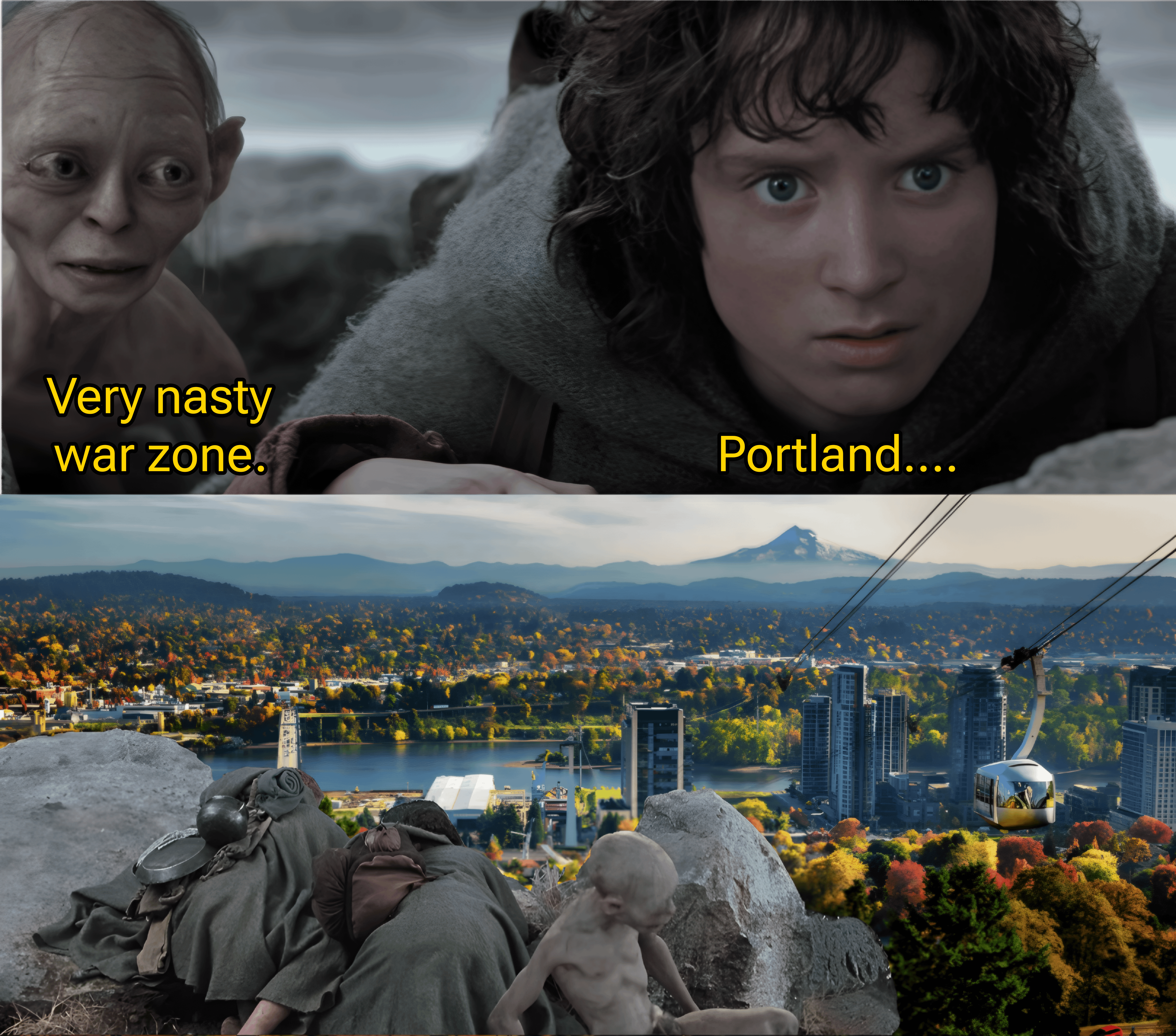 Portland is beautiful but boring. As far as crime, maybe a meth head under a bridge. Oh no. anyway.