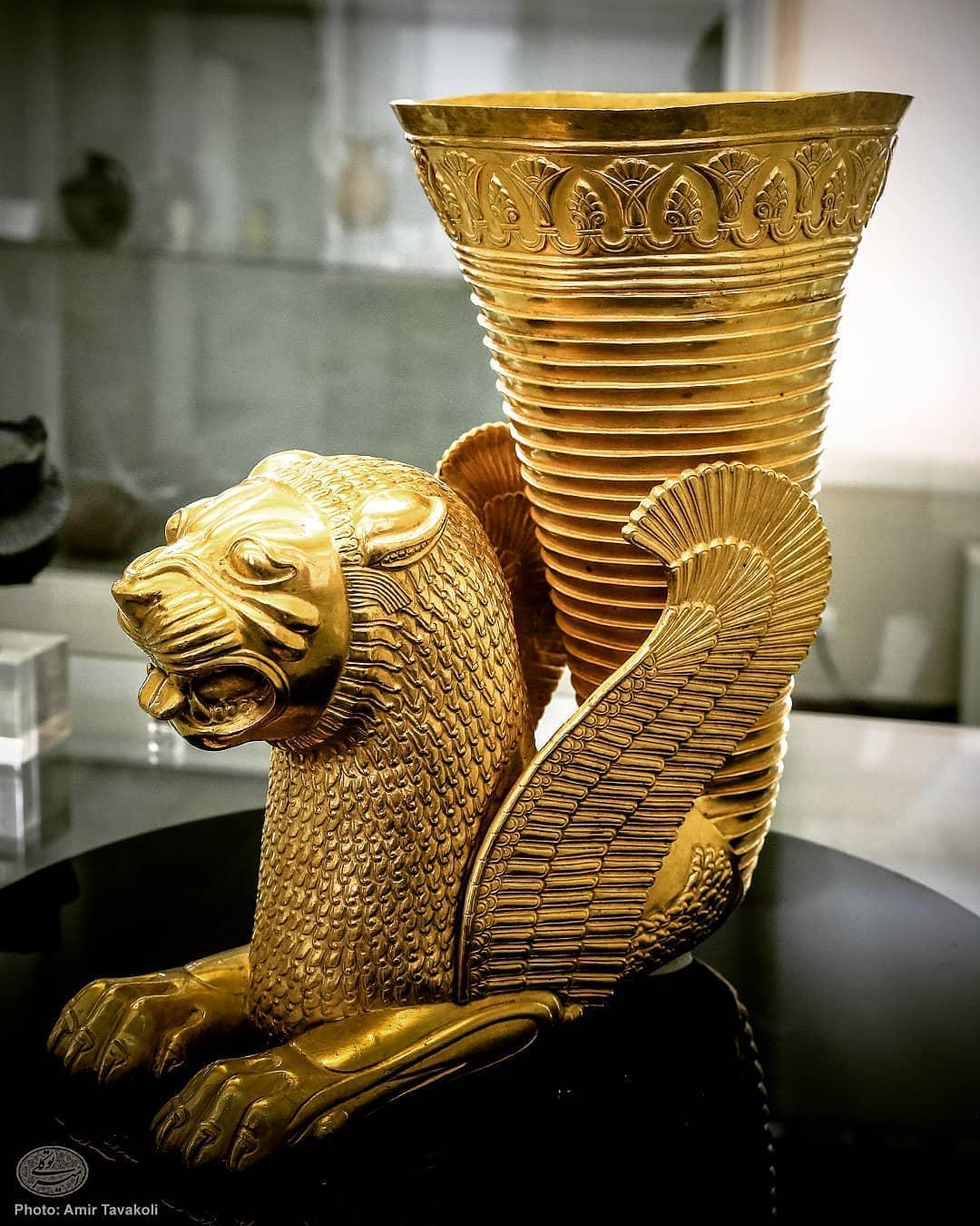 A Persian royal rhyton crafted from pure gold, widely regarded as the best-preserved example from the ancient world. Dating back to the Achaemenid Empire (550–330 BC), it was discovered in Hamadan and is housed at the National Museum of Iran. [1080×1350]