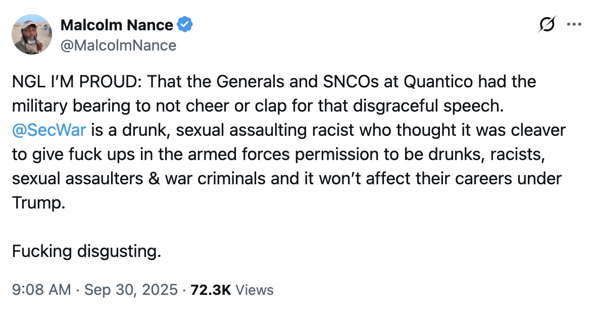 It’s crazy how he’s the ‘secretary of war’ but almost every single person in the audience of that madness-riddled propaganda rant would be more qualified to lead that department. The U.S. really is just a joke