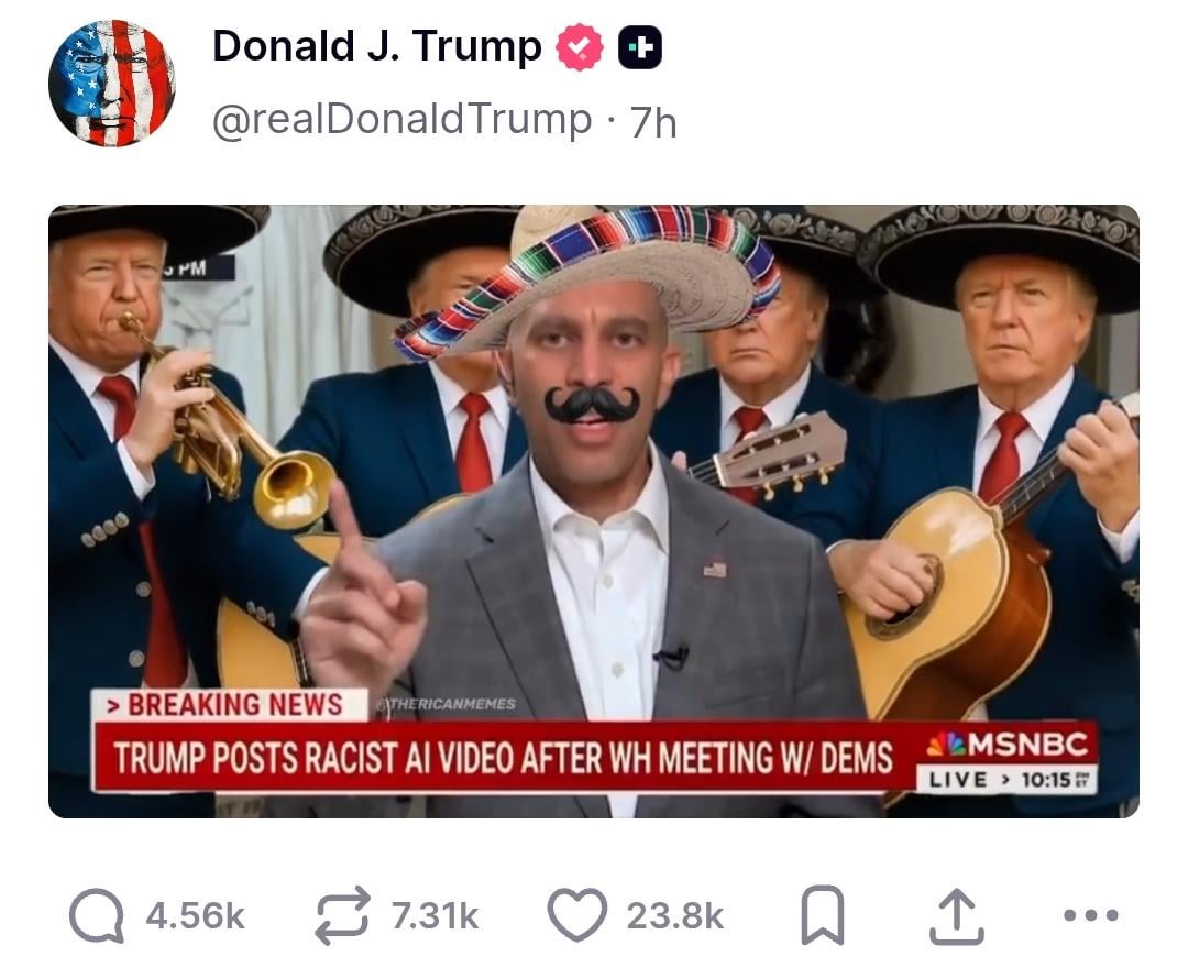 Without restating the hilarity of this actually just being posted by the president, it’s just impressive what AI can do.