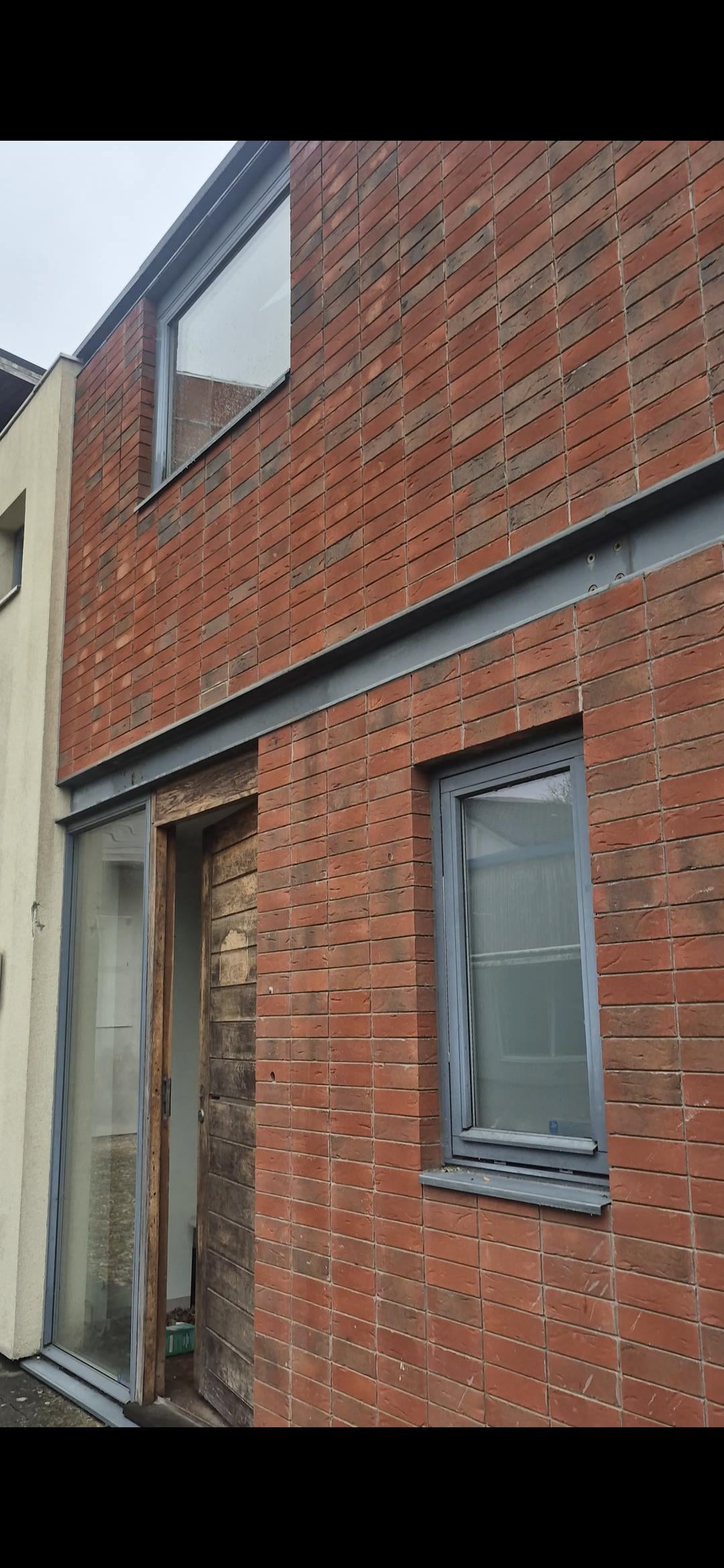 The bricks must just be a cladding. They’d never lay them like that if there was any structural element. It’s an interesting look but it looks wrong to me.