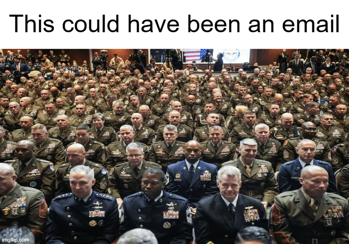 I’m totally convinced this whole thing was just an ego trip for Hegseth, probably a fantasy for him to lord his new rank over the people he had to be subordinate to during his service.
