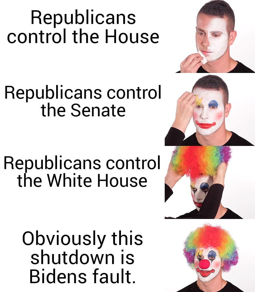 This! Plus republican governors, “majority republican run states”, also lots of republicans in state houses as well and we still get a shutdown. It’s almost like republicans don’t know how to govern, they just know how to make peoples lives more difficult.