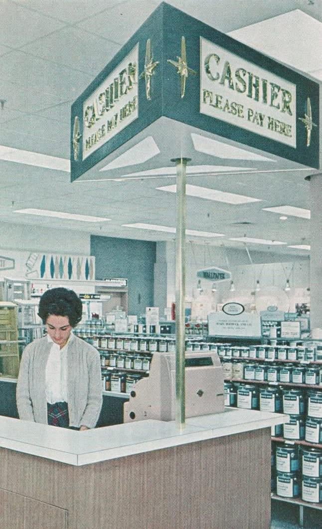 Paint department at Sears, circa 1962, from their annual report. Photo courtesy of Pleasant Family Shopping on Facebook by AxlCobainVedder