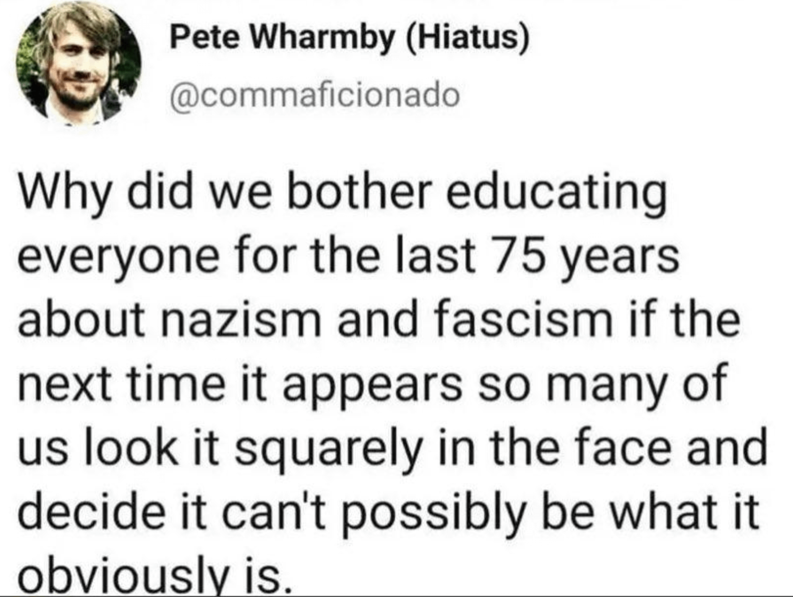 Because most people *aren’t* educated about the rise of fascism in the early 20th century.