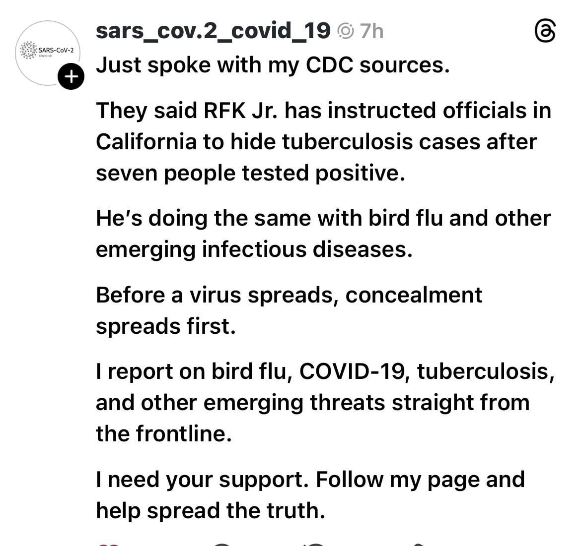Go back to masking up. Don’t risk it at this point; could be potential pandemics brewing all over this country at this very moment, and thanks to RFK Jr. we won’t even know. They’re playing chicken with our lives; stay safe.
