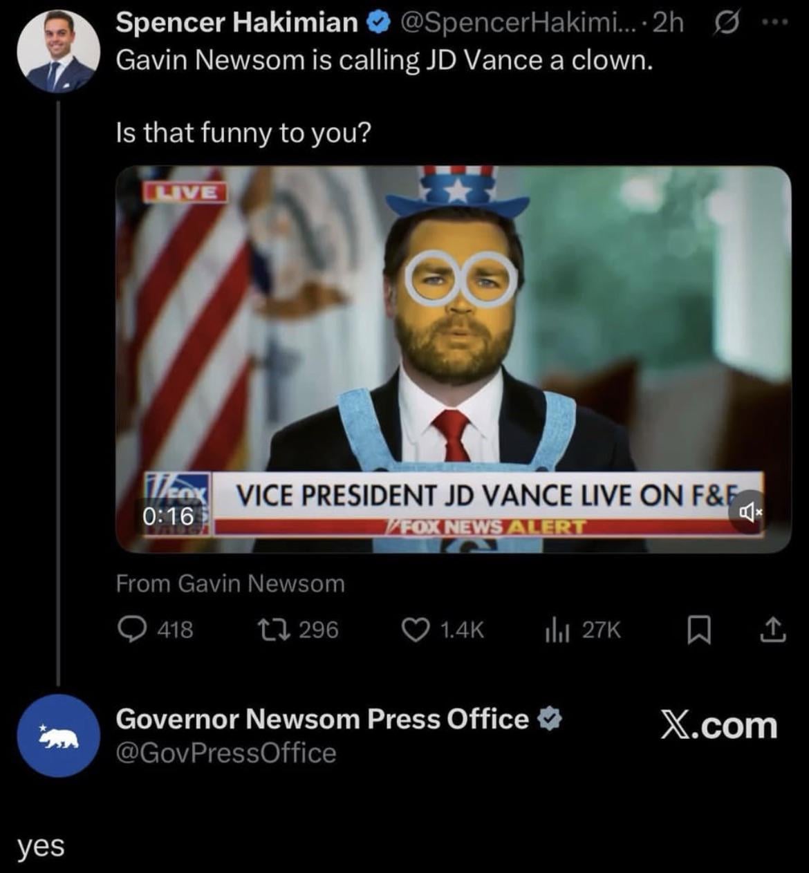 “I can’t believe the childish insults Gavin is using” – says the people who unironically support trump
