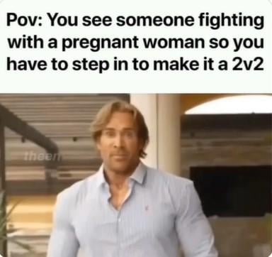 1. This isn’t how pov works, unless you joined the pregnant woman and are now fighting 3v1