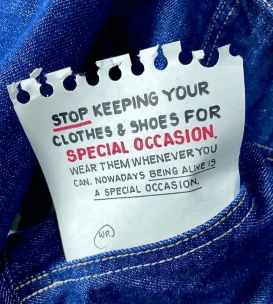 This is such good advice. I work as a plumber 6 days a week in winter and basically wear work clothes and sleep clothes all winter. Last year I realized I never “get” to wear my good threads, till I realized even if it’s one day a week or for two hrs after work wearing my fav clothes makes me feel good and now is the time.