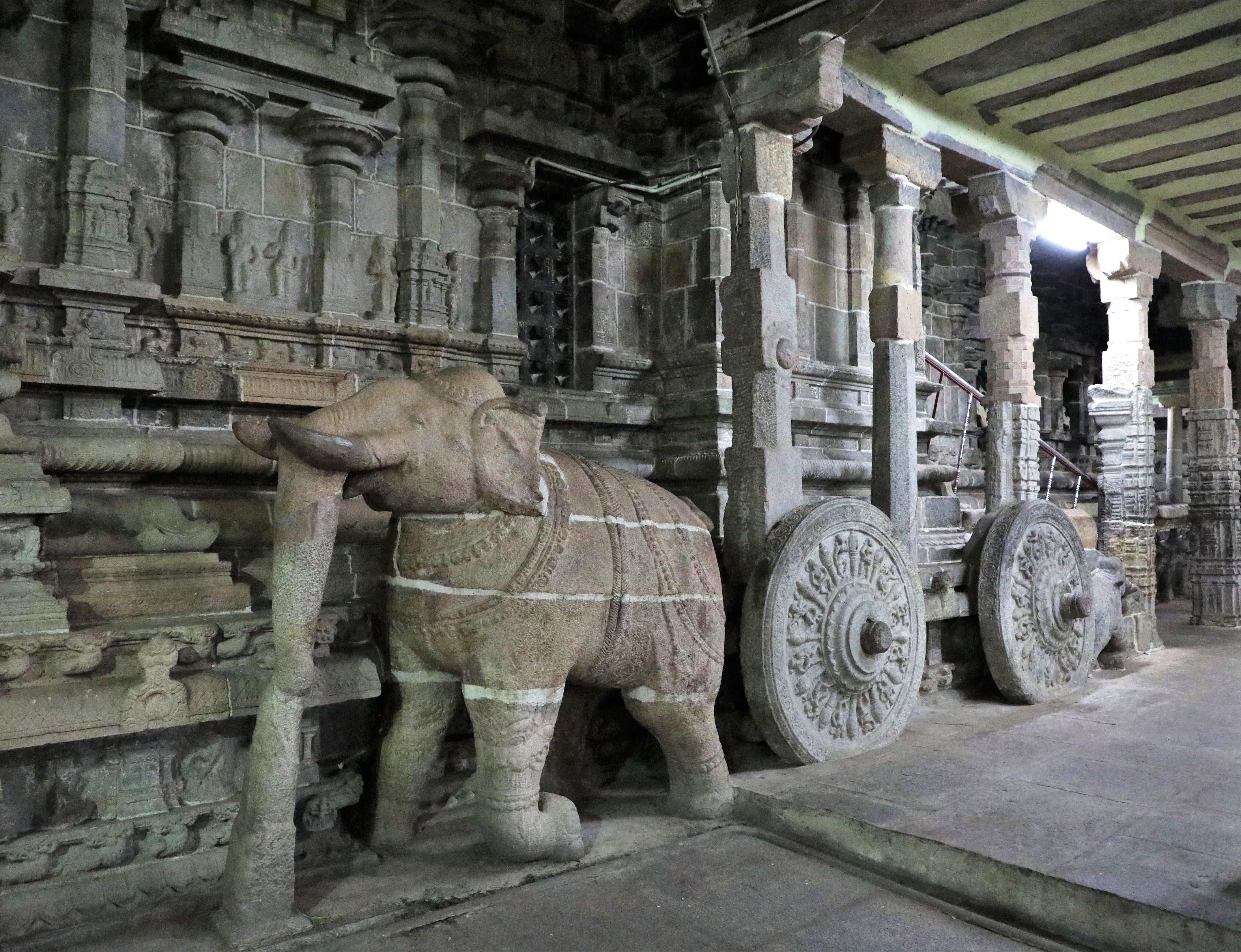 Stone chariot and elephant at Airavatesvara Temple. Tamil Nadu, India, Chola Empire, 12th century AD [4300×3300] by MunakataSennin