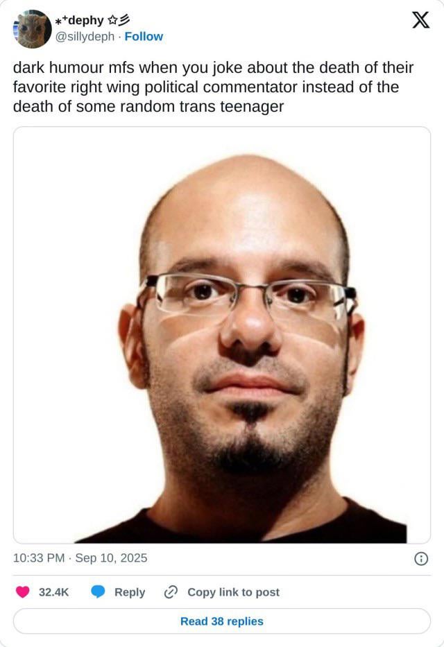 ottoandinga88 on October 2, 2025 9:43 pm I get the bit but given Cross’ actual views and dispositions it’s really ill fitting He just published an open letter calling dozens of his cohort pathetic sacks of shit for signing up for the Riyadh comedy festival