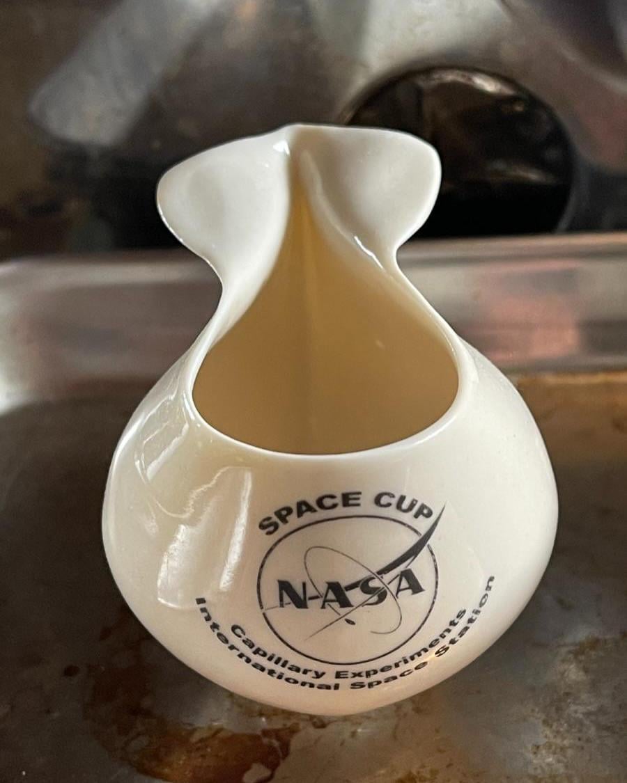 “The Capillary Cup” was engineered by NASA as a zero-gravity cup for drinking beverages in microgravity, where liquids do not naturally settle at the bottom of a container due to the lack of gravity.