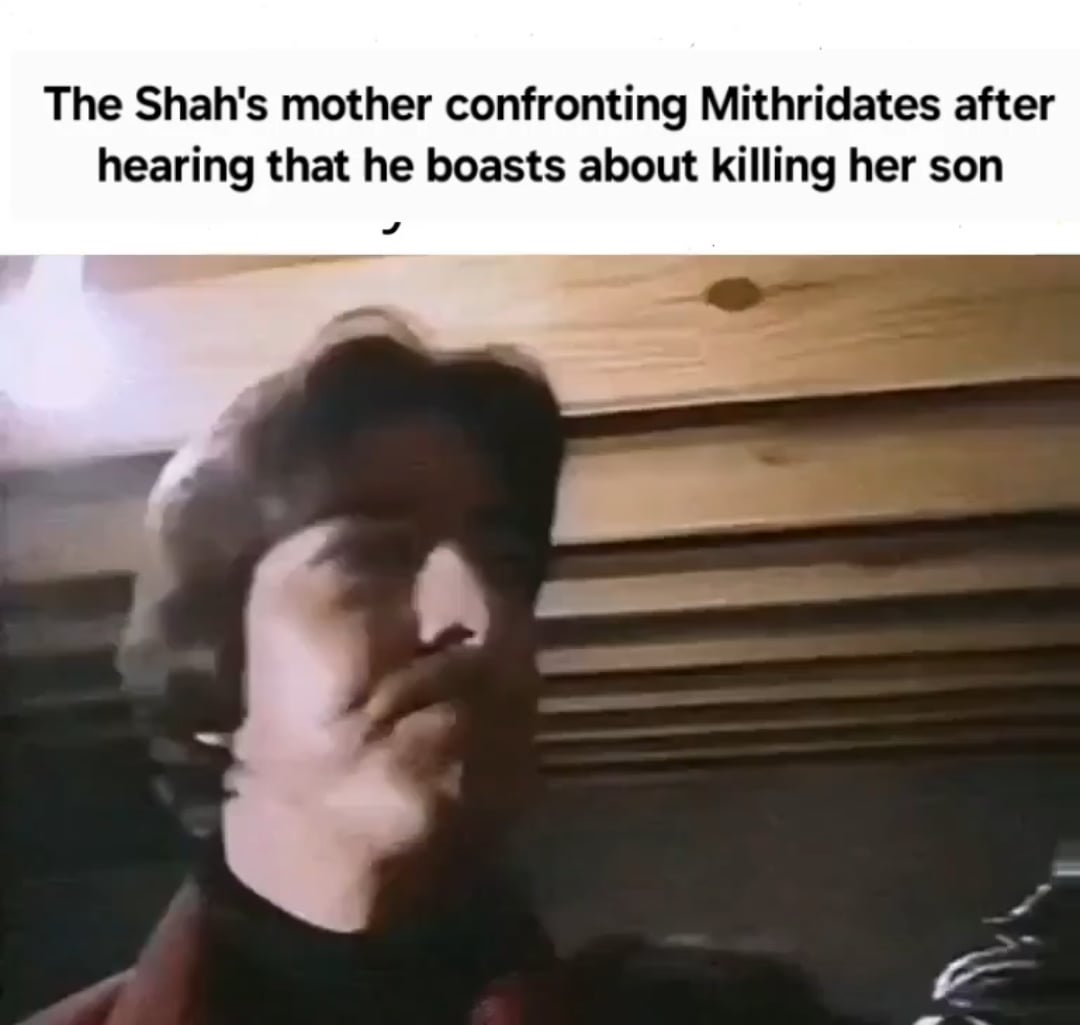Upset that one of her sons died, the Shah’s mother went on a killing spree against some of the loyalist figures of the battle, including Mithridates, who arguably won the war.