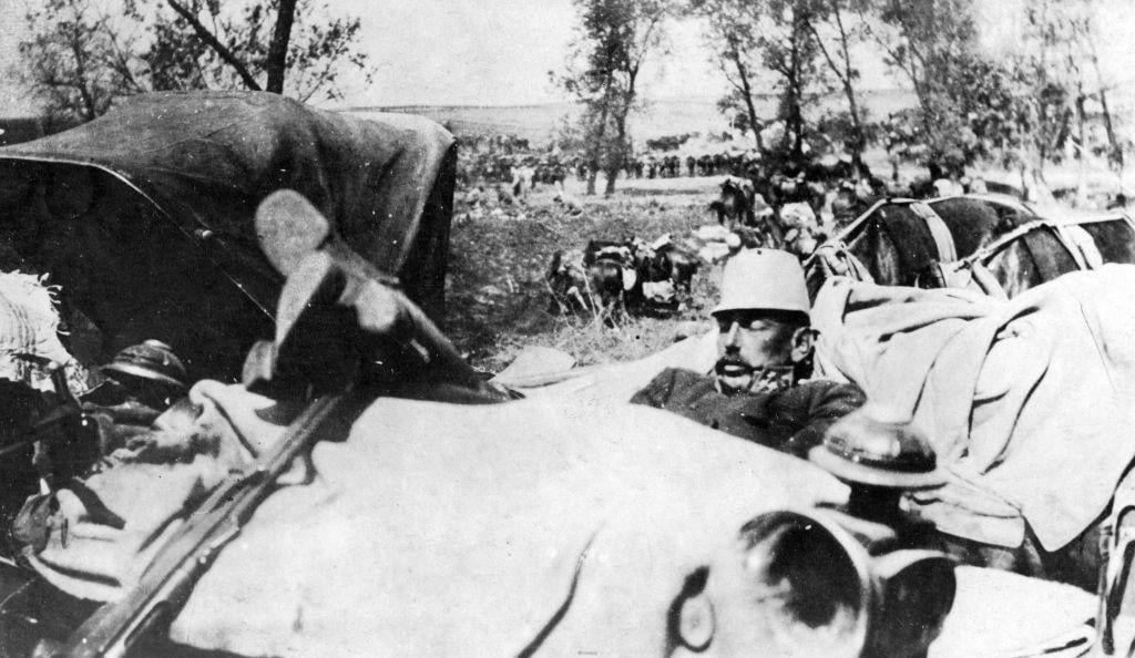 An Austro-Hungarian general, possibly Franz Conrad von Hötzendorf, sleeping in a horse-drawn carriage, 1917. [622 x 321] by mgwngn1