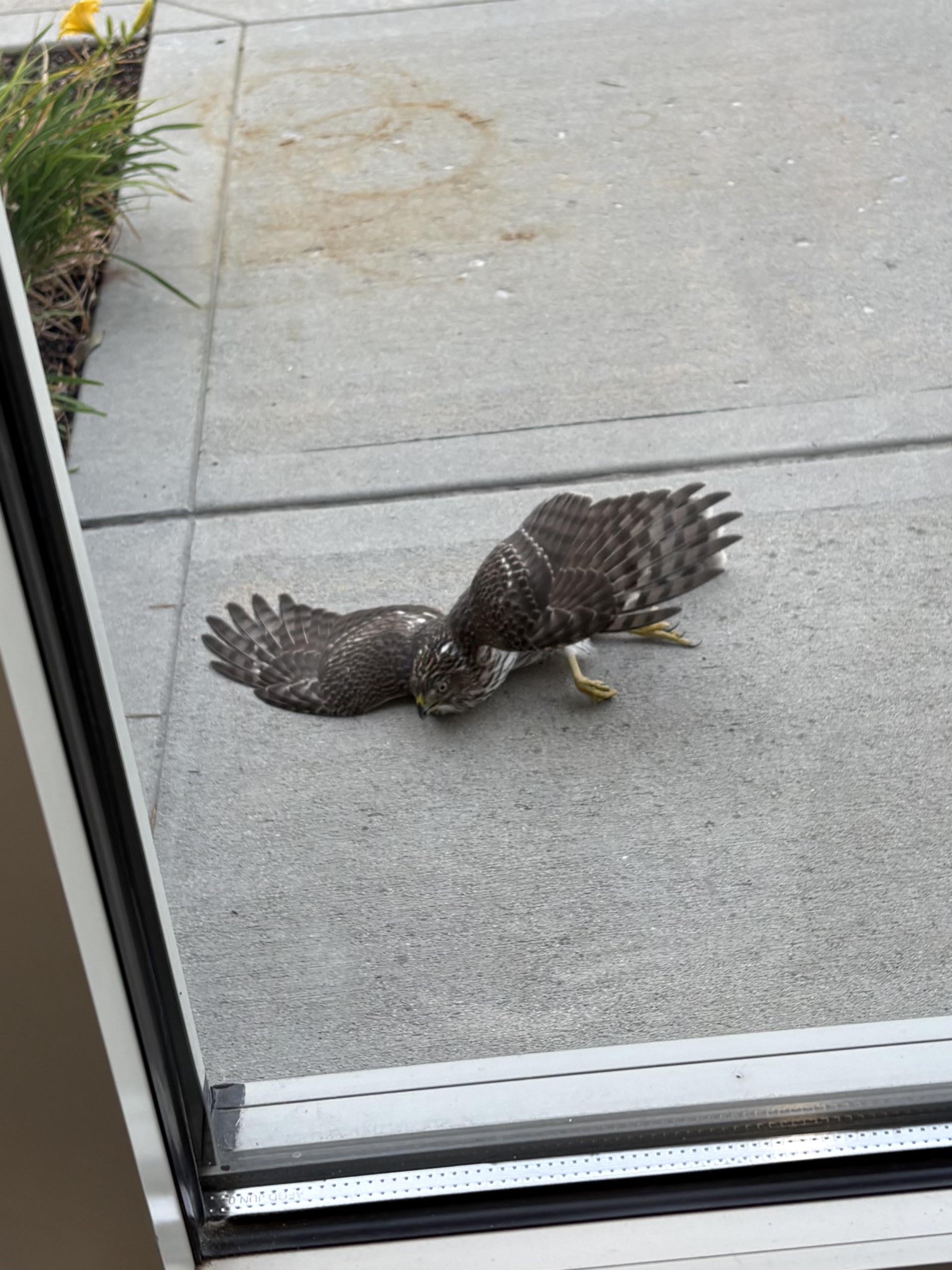 We heard a bird fly into the window at my office; turned out to be a hawk