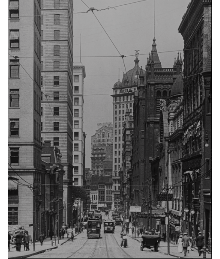Looking down Sixth Avenue. Several of those buildings are still there!