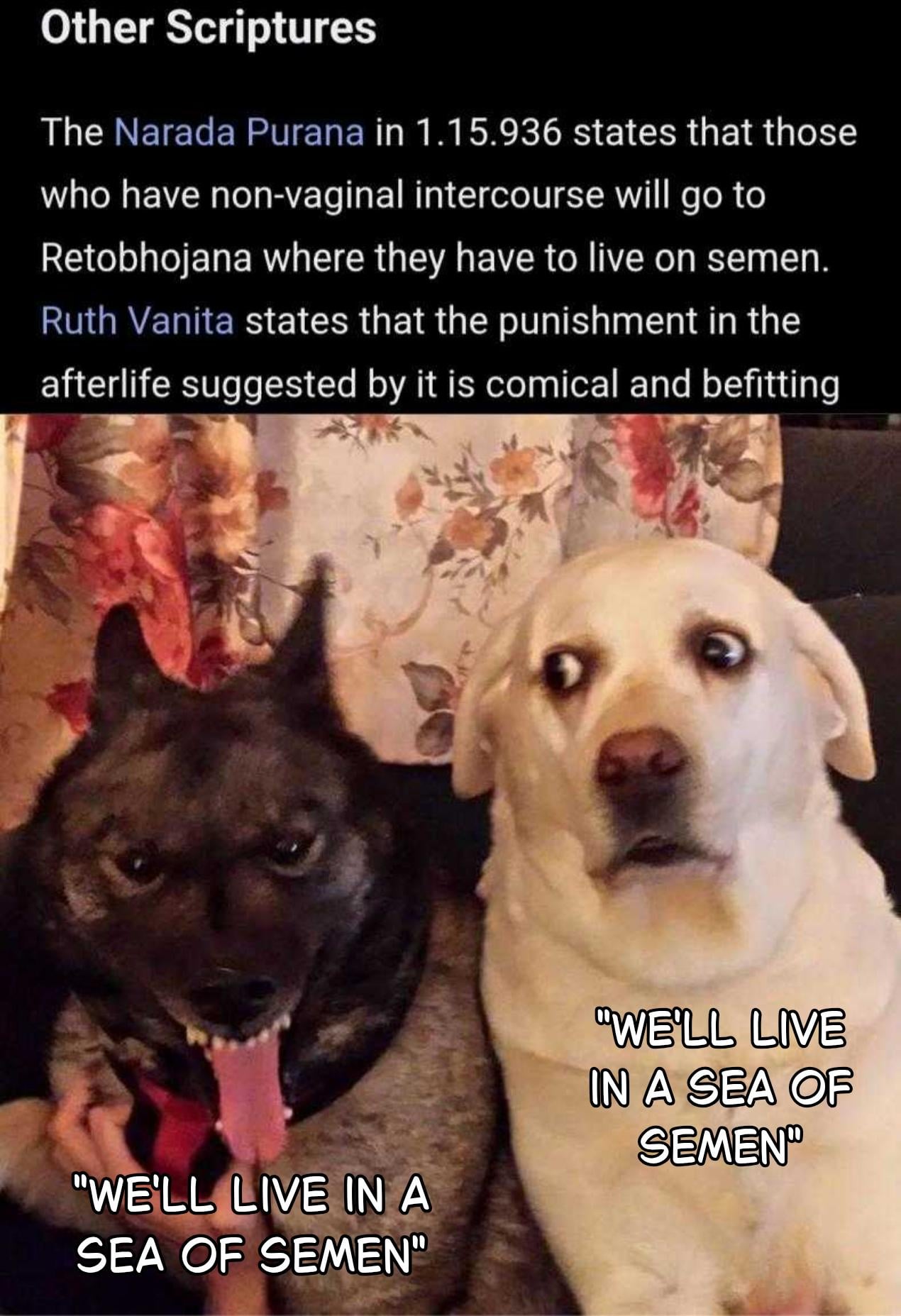 Narada Purana is one of the 18 Mahapuranas of Hinduism, the text is named after the Vedic sage Narada, the musical genius and monk who also appears in numerous Upanishads. The excerpt here is from 1.15.93a-b detailing the punishment for homosexuality/non vaginal intercourse.