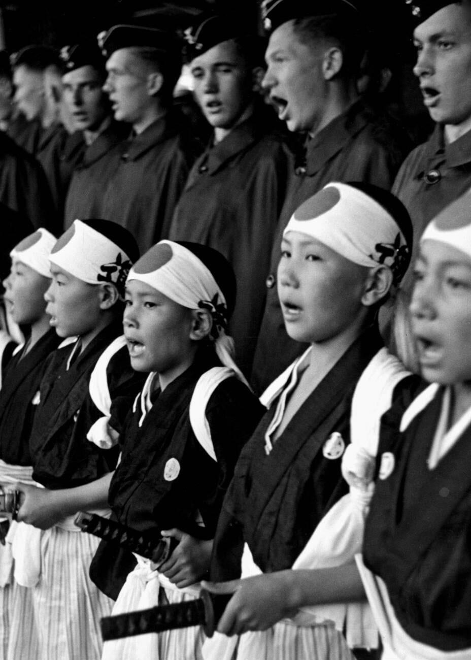 Japanese and German children sing songs during a Hitler Youth trip to Japan, 1938 (928×1300) by FayannG