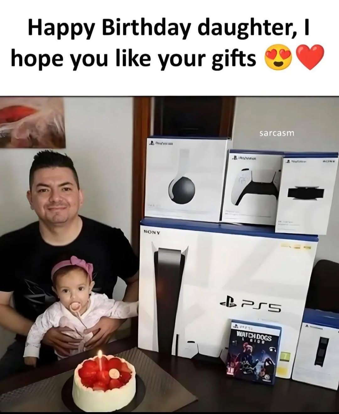 Just remember she’ll be an adult one day and this picture will be in her book daddy dearest. Always too busy playing games to love me.