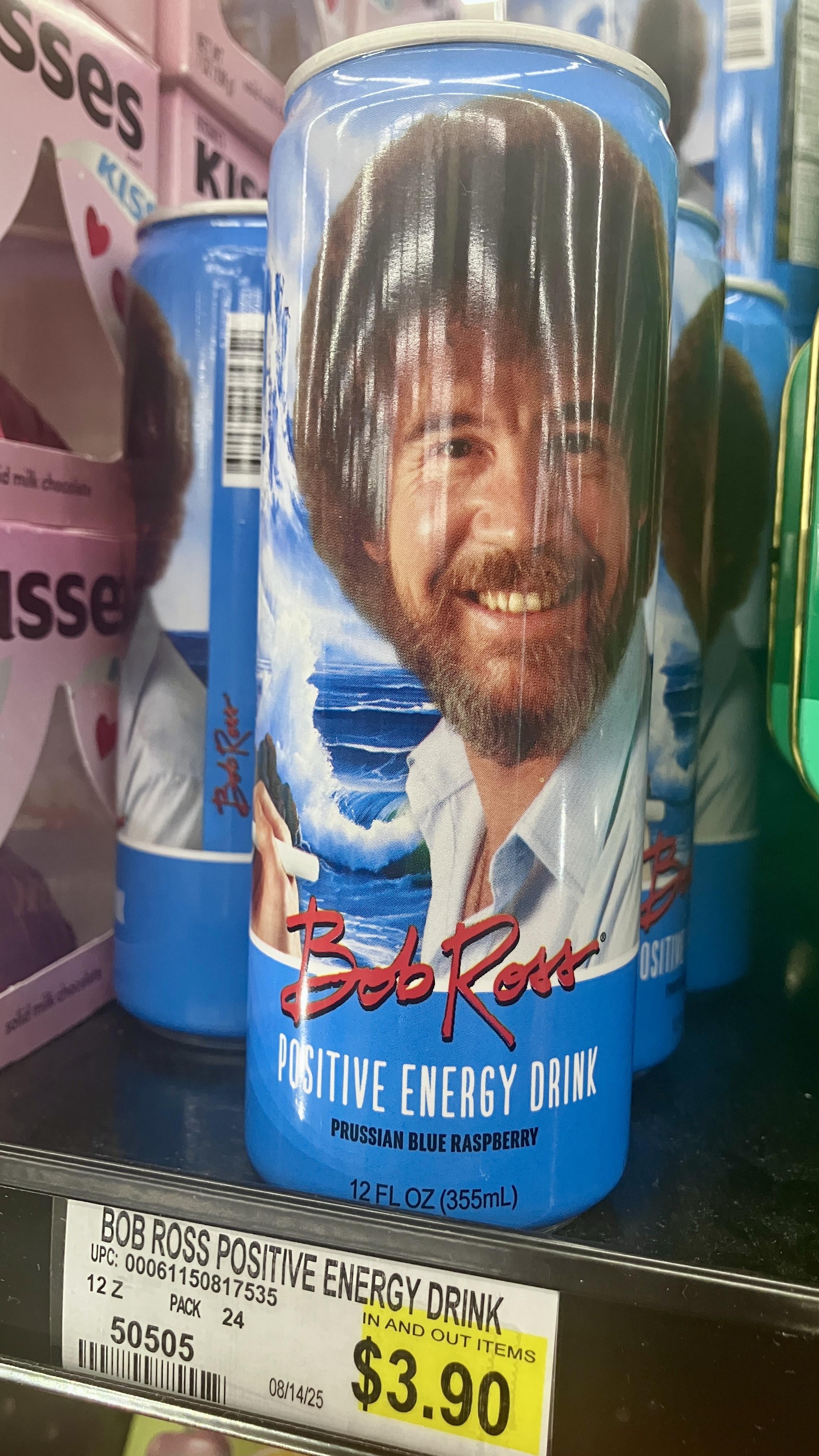 I bought of those before covid happened in 2019 and it’s still just sitting on my shelf. I ate energy drinks but love Bob Ross got me some little tree mints as well.