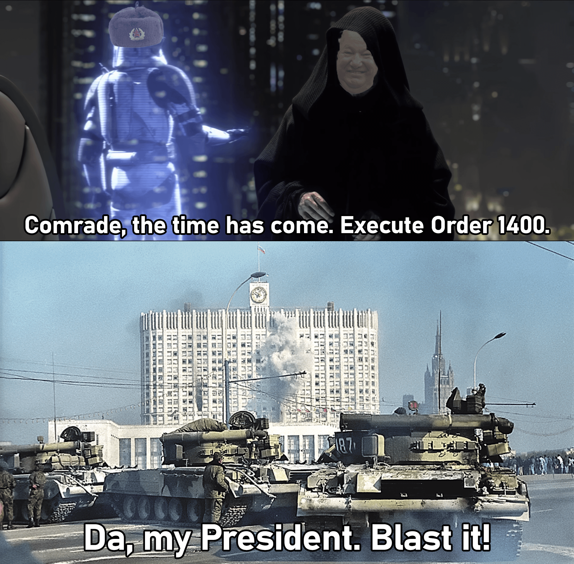 Yeltsin issued Decree 1400, dissolving Parliament and setting a date for early elections and a constitutional referendum. by R2J4