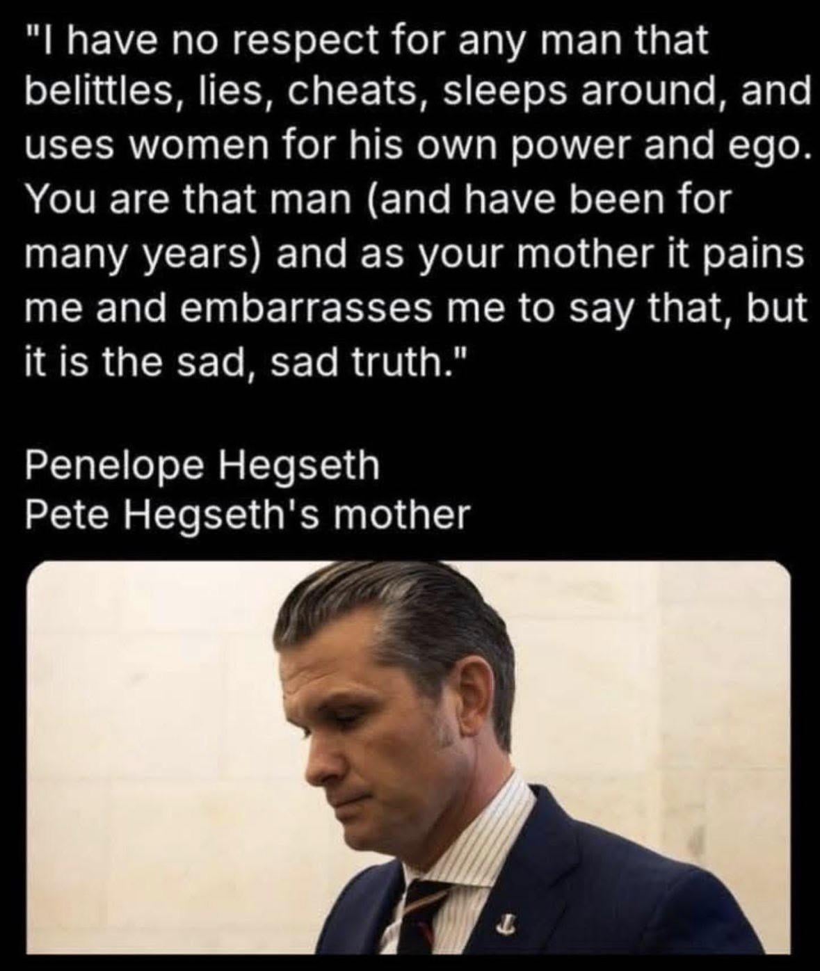 I recall TFG’s mom was also embarrassed of him. RFK family disowns him. Seems to be a thing.