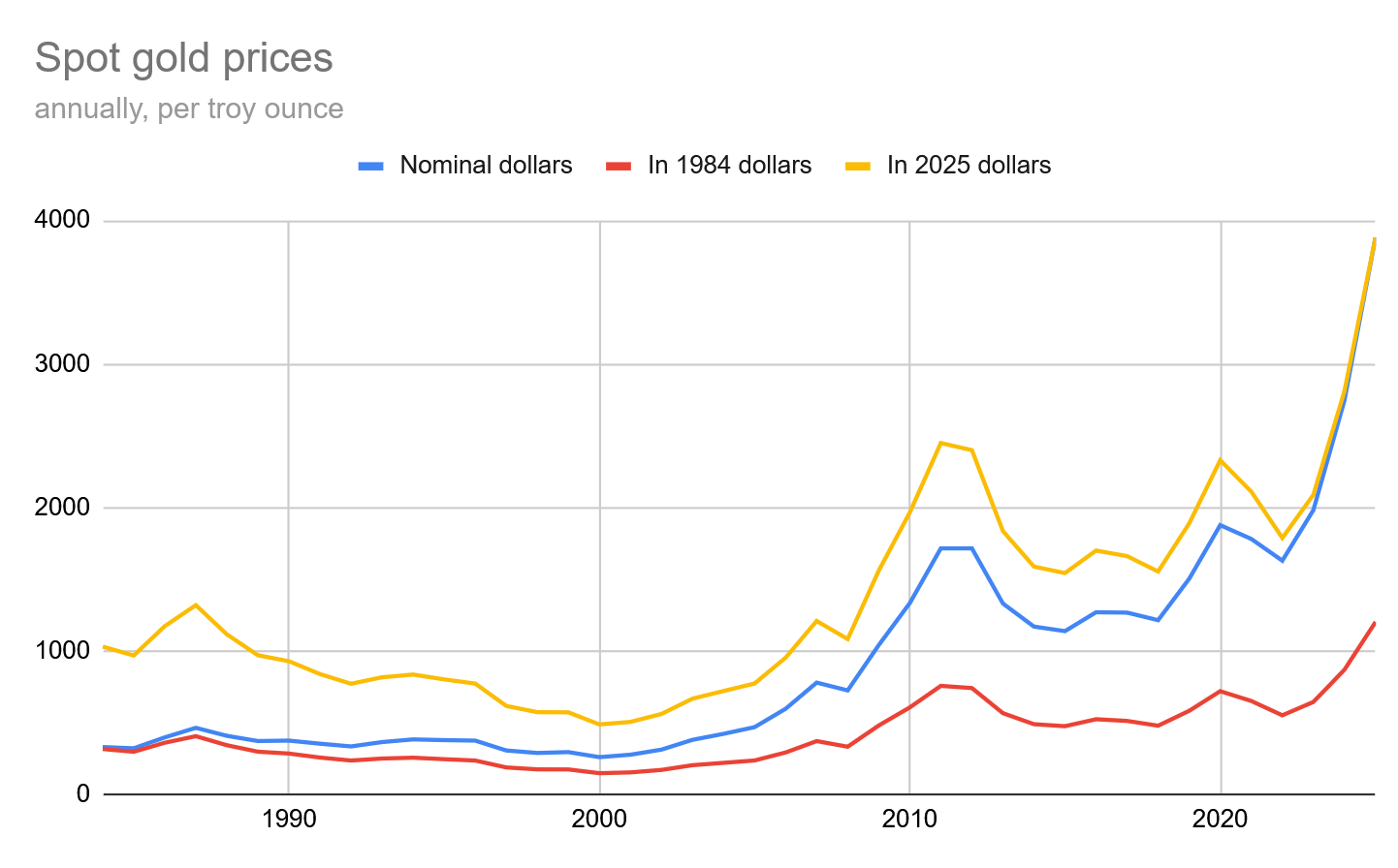 Tech valuations over the years compared with gold and CPI. Not going to win any awards, but an interesting framing device. by FuckingSolids