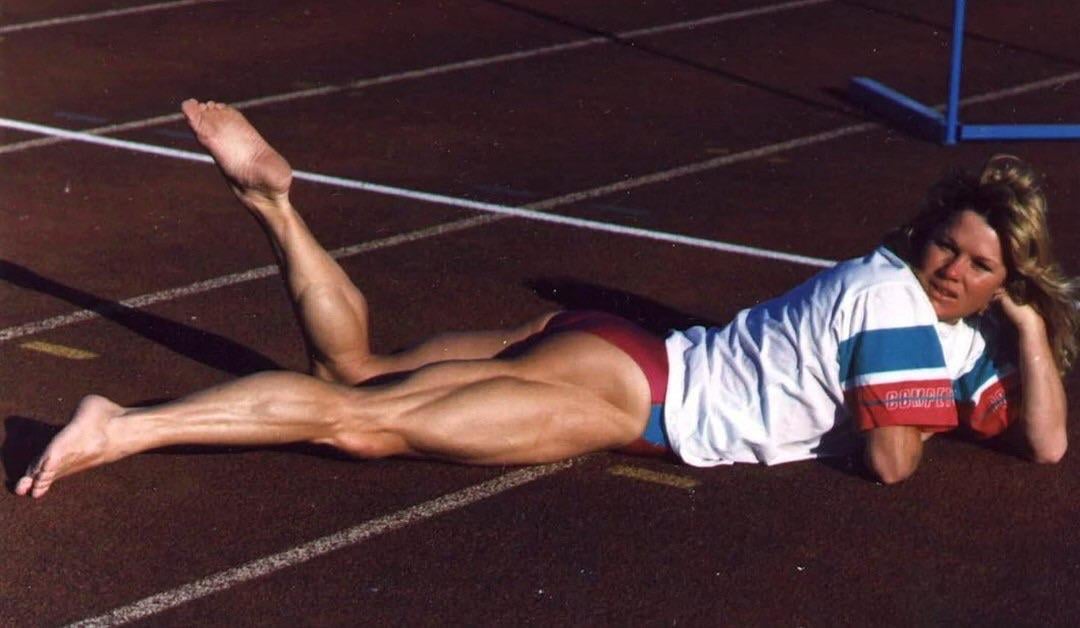 Olympic and commonwealth hurdle athlete, Wendy Jeal (aka “the woman with the steel legs”) training for the 1988 Seoul games.