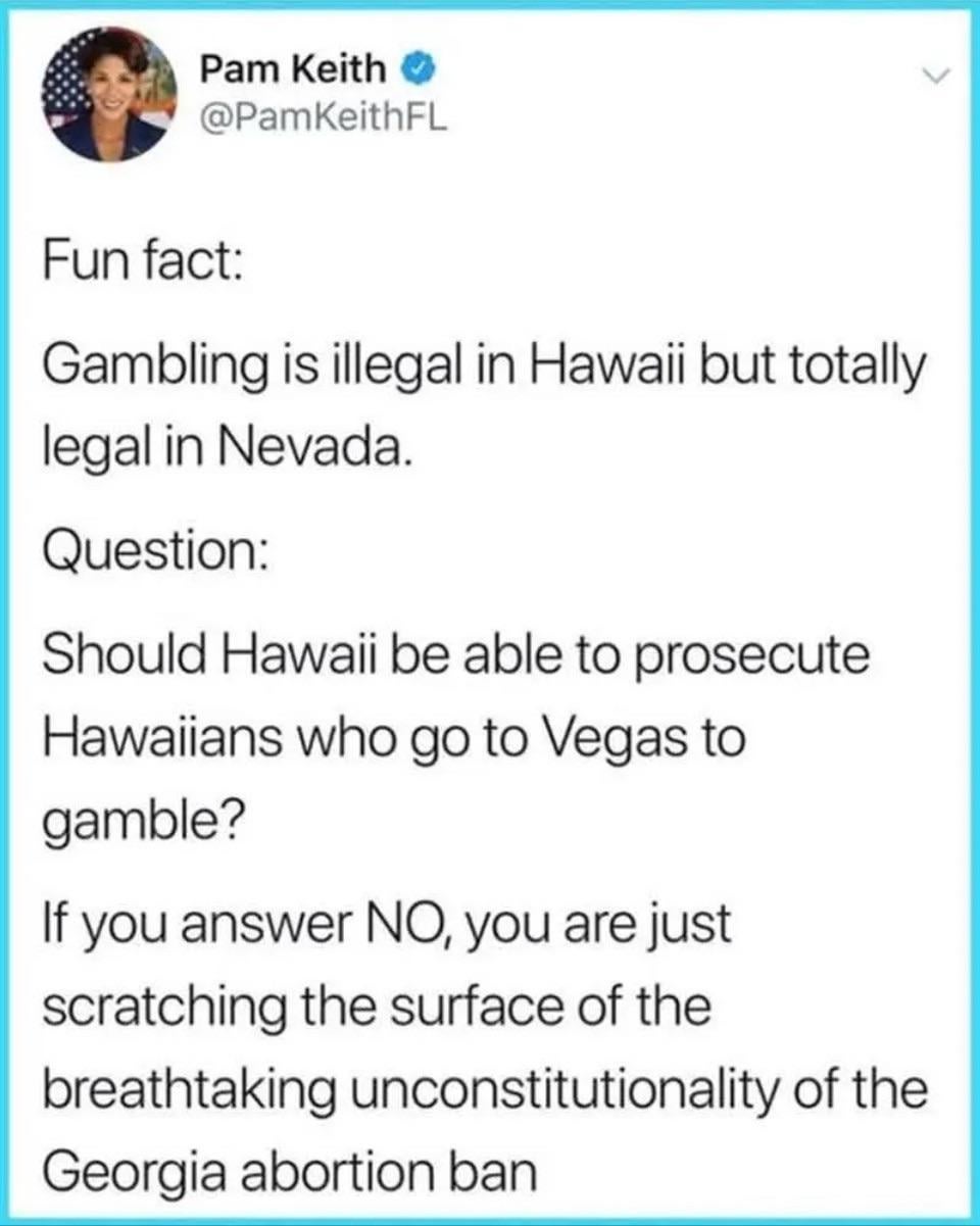 Should lock up Nevadans who go to Hawaii for having gambled or supported someone who gambled at a point in their lives.