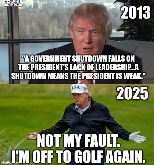 IIIllIIlllIlII on October 4, 2025 8:50 pm MAGA hypocrisy is endless. There is no point in bringing it to their attention because they don’t care. The only thing that seems to bother them is when you do what Gavin Newsom is doing and speak back to them in their own language