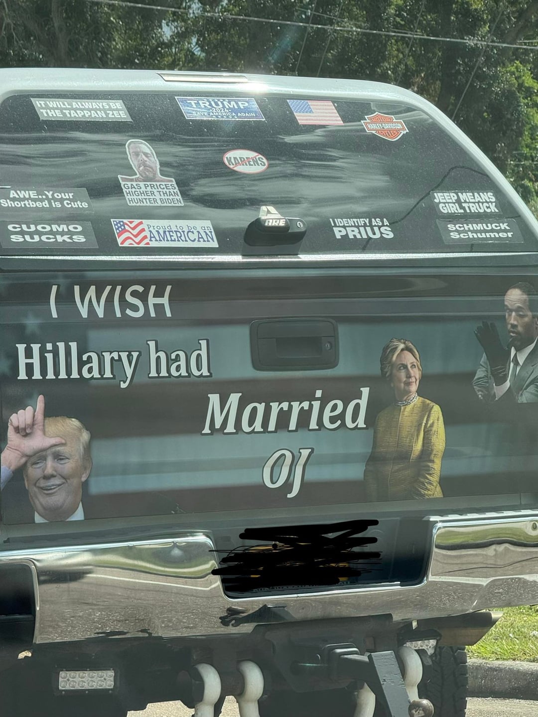This person (aka middle aged white man most likely) internalizes their hatred of her so much that they spent actual money decorating their vehicle like that.
