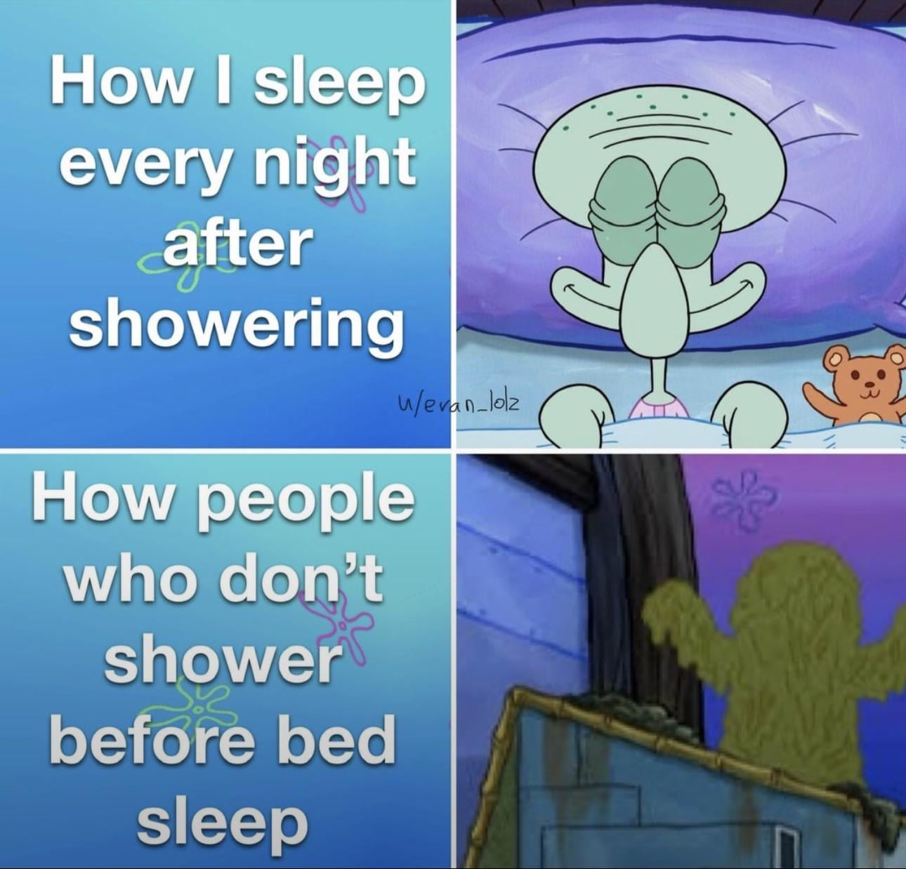 Everyone sweats in their sleep and wakes up smelling one way or another. Atleast I start my day cleaning off the stink. Yall are disgusting going about your day without showering first