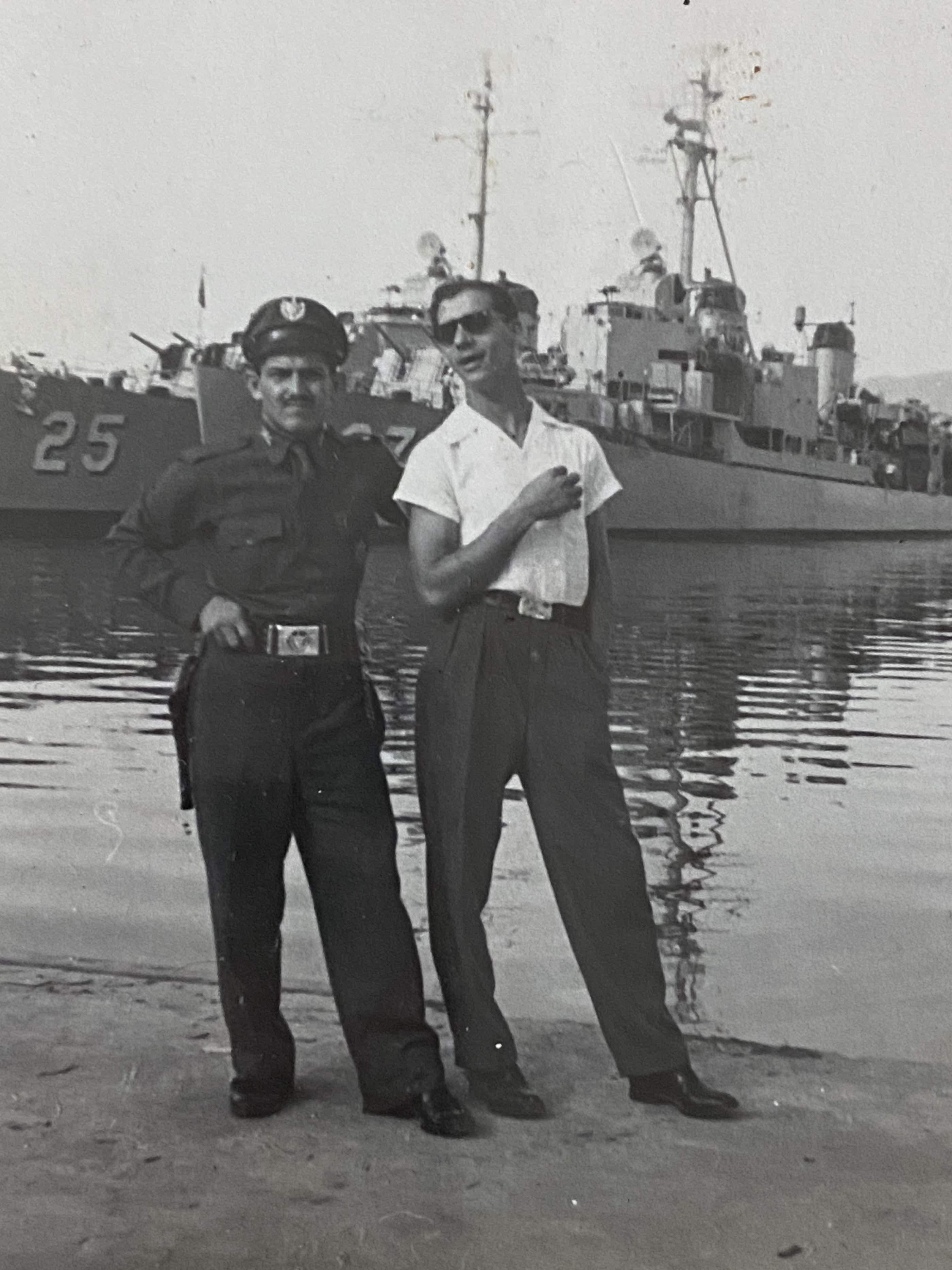 This is a photo of my adopted dad (in uniform on the left), taken sometime in the 1950s in Cuba, before Castro. He was from Camagüey and served in the military under Batista.