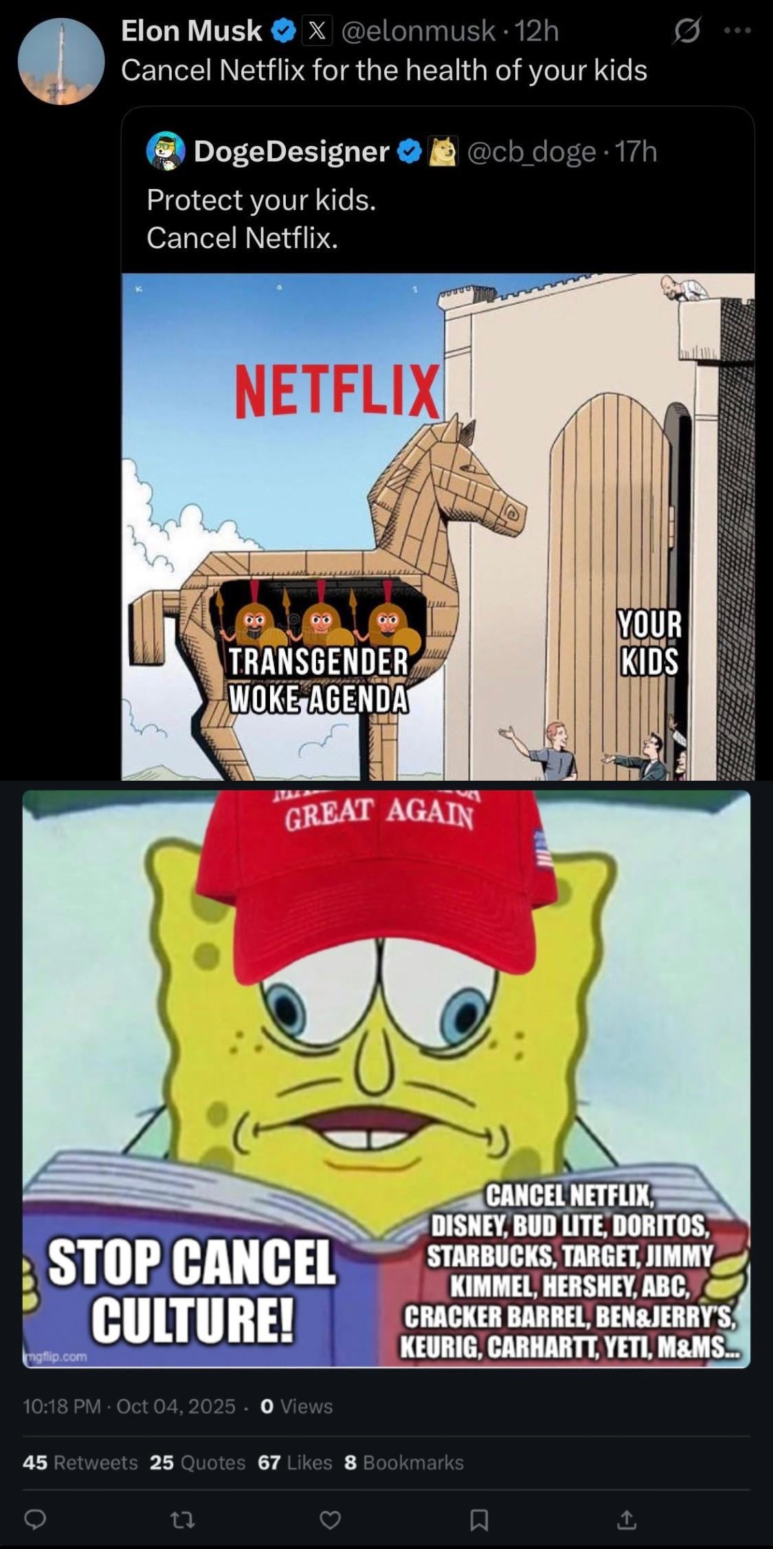 Elon is trying to cancel netflix over an already canceled netflix show from 2023?