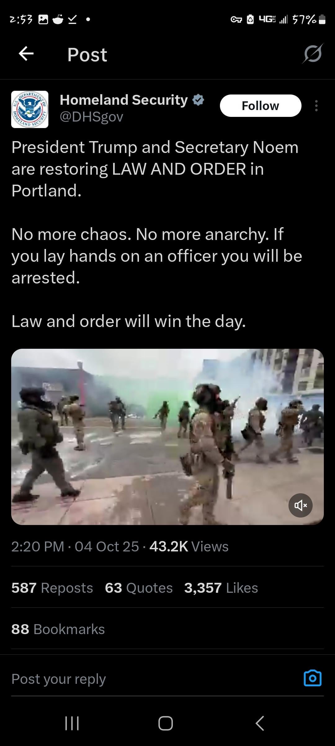 There was no war in Portland until the DHS and the Department of War showed up to agitate American citizens 🇺🇸