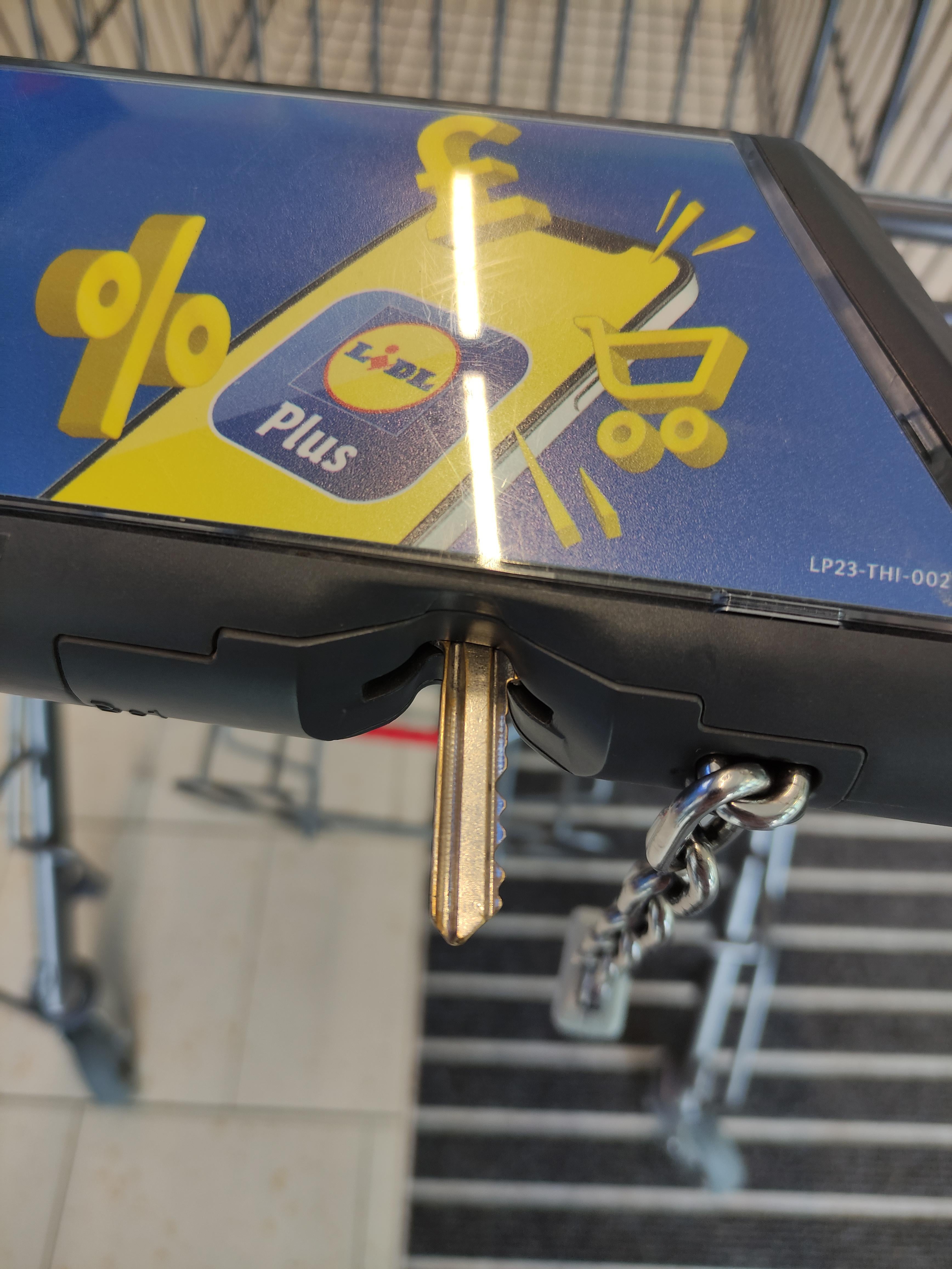I don’t know about Lidl, but at Aldi’s here in the States when you get to the register the cashier puts all your groceries in the cart the last person left and then you slide your now empty cart up to the cashier and take the one with your groceries away to the bagging area, leaving your original cart for the next person’s groceries. So you never end up with the same cart you came in with, nor therefore the same quarter. Wouldn’t want to explain mid-line that I really need my key back from the person behind me!
