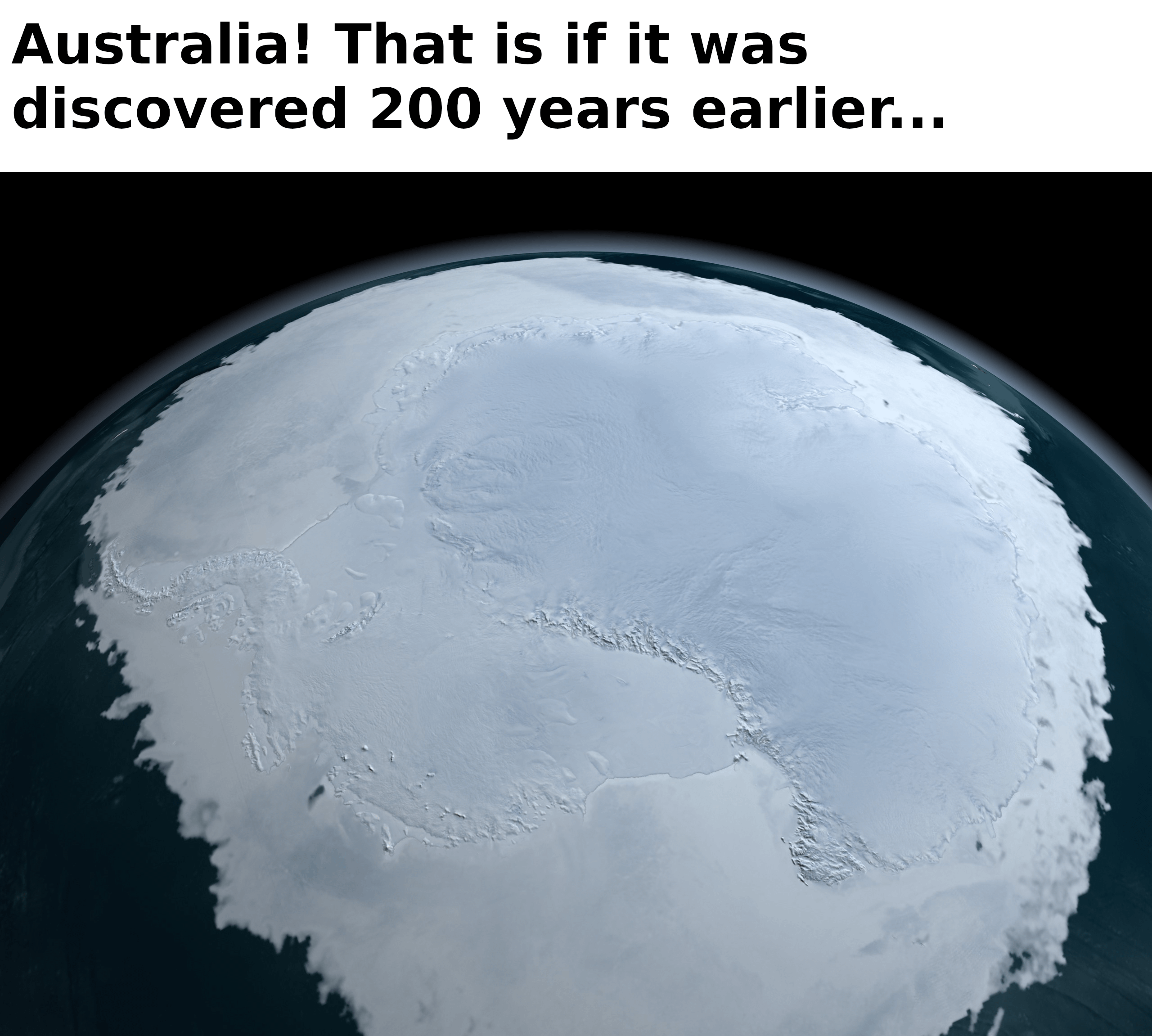 I don’t recall exact source, I believe it was AlternativeHistoryHub which entertained the idea of Green Antartica. But the point is, that the most southern land mass discovered were to be called Australia.