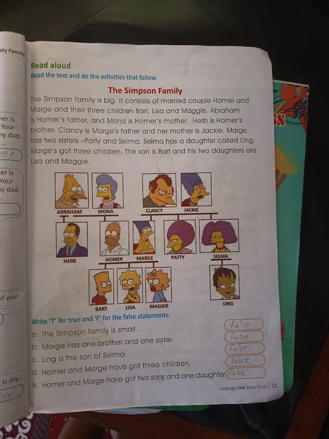 “The son is Bart and his two daughters are Lisa and Maggie”- Shouldn’t it be something like: “The name of *her* son is Bart and *her* two daughters are called Lisa and Maggie”?